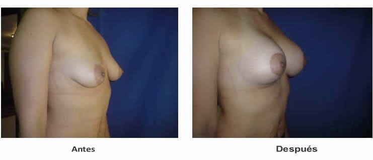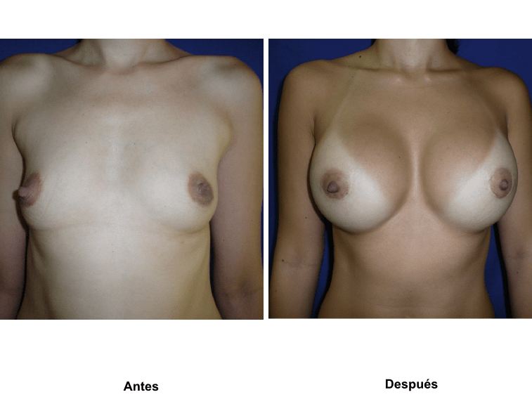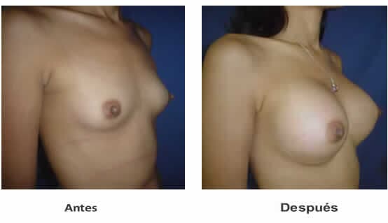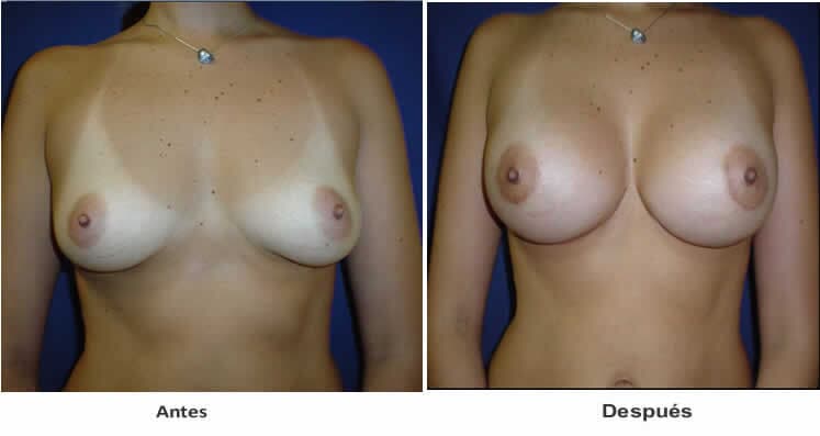 Es la cirugía estética más frecuente y su objetivo es aumentar el tamaño de las mamas mediante la colocación de prótesis debajo del tejido mamario o del músculo pectoral, con el objetivo de lograr una apariencia más natural y atractiva de las mismas. La incisión de aproximadamente 3 cm se puede hacer en cualquiera de los siguientes sitios: el surco submamario, la areola o en la axila. Es un procedimiento ambulatorio y se puede realizar bajo anestesia local con sedación, peridural o general. La incapacidad laboral es entre 3 a 5 días. Siempre se conserva la función del seno y no altera la sensibilidad del pezón.