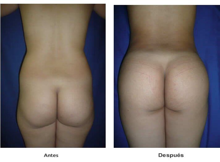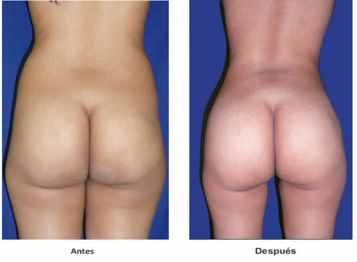 El aumento de los glúteos se obtiene con la Lipoinyección de la grasa del mismo organismo o con PRÓTESIS GLÚTEAS especiales, esta última se hace a través de pequeñas incisiones bien disimuladas en el surco integlúteo. El postoperatorio implica una incapacidad por una semana. Los resultados son permanentes, con una apariencia natural y muy agradable.